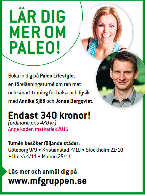 PSST! Sugen på att lära dig mer om paleo? Du som läser Matkärlek får 140 kronor i rabatt på inträdet till föreläsningarna, betalar endast 340 kr, ordpris 470 kr. Ange koden matkarlek2015 – läs mer och boka här!