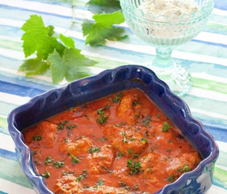 Servera med sallad och eventuellt tzatziki. Det går också bra att steka keftedes och slopa tomatsåsen.