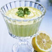 Mixa avokadofruktköttet, vitlök, senap och citronsaft med blender eller stavmixer. Tillsätt oljan långsamt i fin stråle samtidigt som du fortsätter mi...