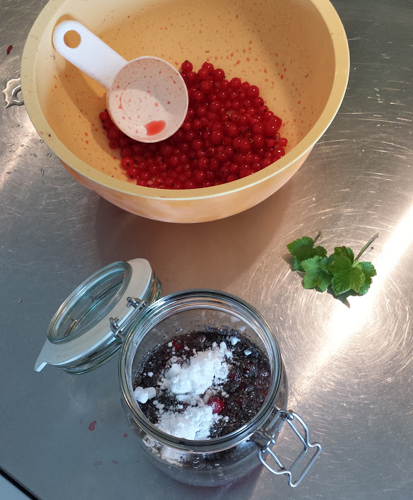 Resten av alla min bär har jag nu fryst in i påsar med 3 dl bär, jordgubbar och krusbär. Så nästa gång jag gör detta kanske det blir på krusbär.