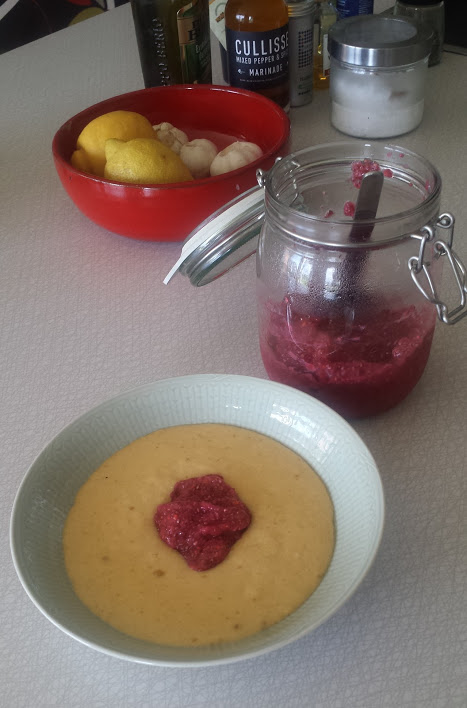 Mixa samman med stavmixer och ställ in i kylen över natten.