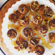 Parmesan- och pestogratinerade champinjoner med vitlök