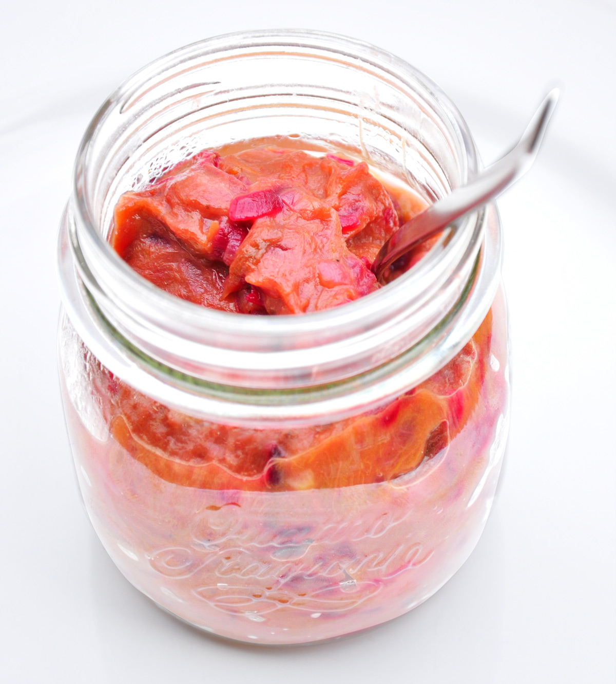 Skär rabarbern i småbitar. Dela rödlöken på mitten och skär den sedan i tunna strimlor. Låt detta koka ihop tillsammans med resten av ingredienserna tills rabarbern har blivit mjuk.